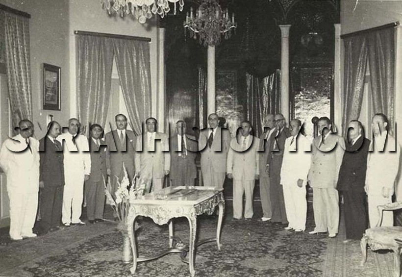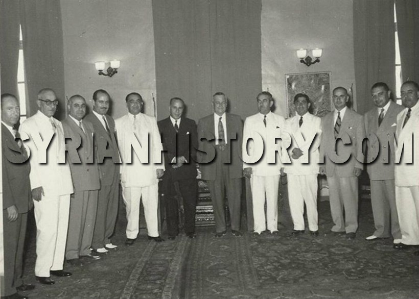 صورة تذكارية للرئيس شكري القوتلي مع حكومة سعيد الغزي الثانية والأخيرة – 1955
